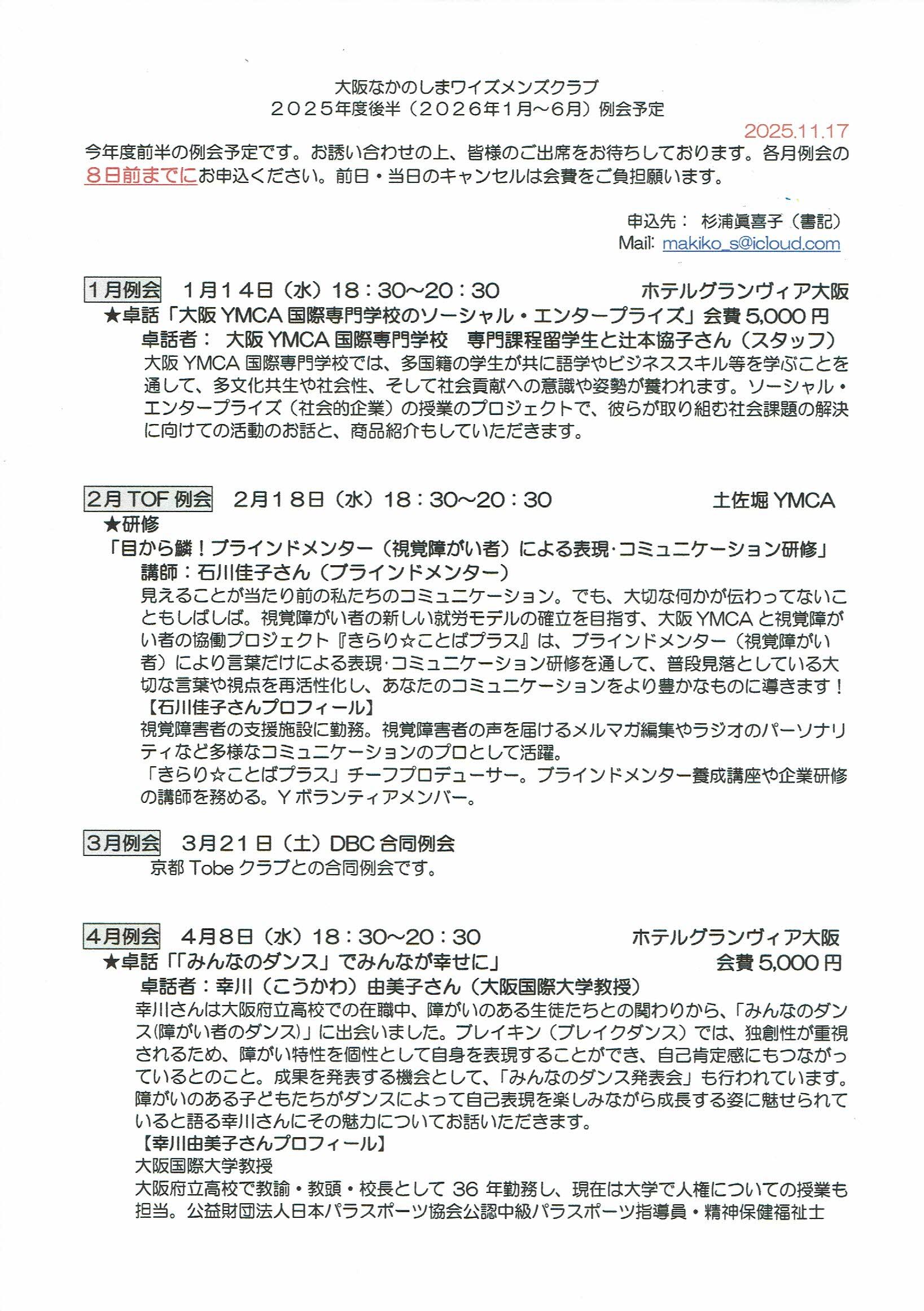 例会日時 |